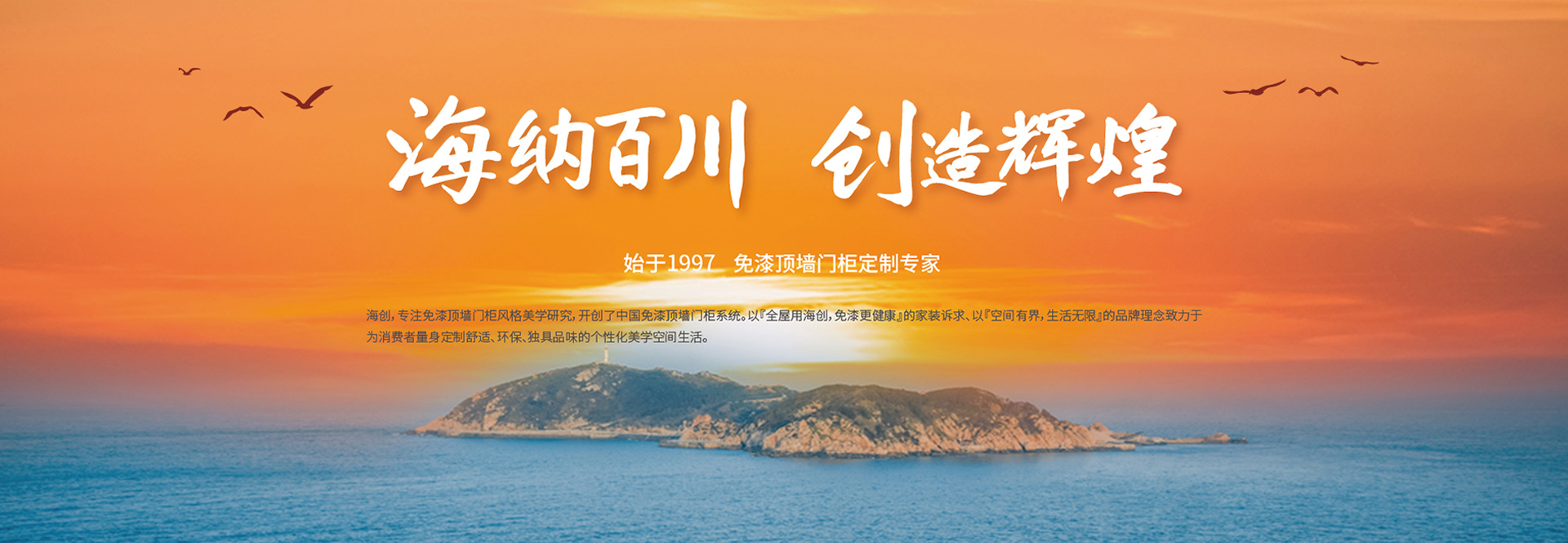 海創,專注免漆頂墻門柜風格美學研究,開創了中國免漆頂墻門柜系統。以『全屋用海創,免漆更健康』的家裝訴求、以『空間有界,生活無限』的品牌理念致力于為消費者量身定制舒適、環保、獨具品味的個性化美學空間生活。
